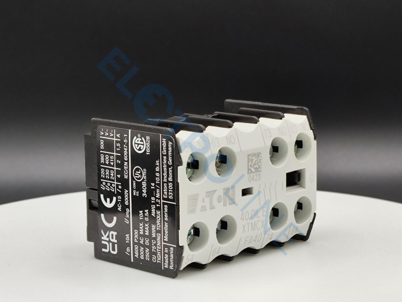Вспомогательный контактный модуль, с принудительно ведомыми контактами, Коммутационные элементы в соответствии с EN 50005, Предпочтительно — коммутационные элементы в соответствии со стандартом EN 50012, Сочетания версии E соответствуют стандарту EN 50011, поэтому их использование предпочтительно., Функция: для стандартных применений, 4-полюсн., Техника присоединения: Винтовые клеммы, Расчетный рабочий ток AC-15 220 В 230 В 240 В: Ie= 4 A, Расчетный рабочий ток AC-15 380 В 400 В 415 В: Ie= 2 A, Назначение контактов Замык. = замыкающий контакт: 4 замык, Вид монтажа: Фронтальная установка, Применяемое для: DILEM-10(-G)(…), DILEM-01(-G)(…), DILEM-4(-G)(…), DILER40(-G), DILER31(-G), DILER22, DILEEM-10(-G)(…), DILEEM-01(-G)(…), DILEM12-10(-G)(…), DILEM12-01(-G)(…), указания: Контакты с принудительным управлением, согласно IEC/EN 60947-5-1, приложение L, в модулях вспомогательных контактов, а также для встроенных вспомогательных контактов DILE(E)M, Вспомогательный размыкающий контакт, пригоден в качестве зеркального контакта в соответствии с IEC/EN 60947-4-1 приложение F (не НЗ с задержкой размыкания), Кодовое число/исполнение комбинаций кодовое число: 80E, 71, 62