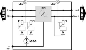DS-HF-120 УЗИП Тип 2+3. Моноблочный последовательного включения со встроенным ВЧ фильтром. Imax=10kA, IL=16А