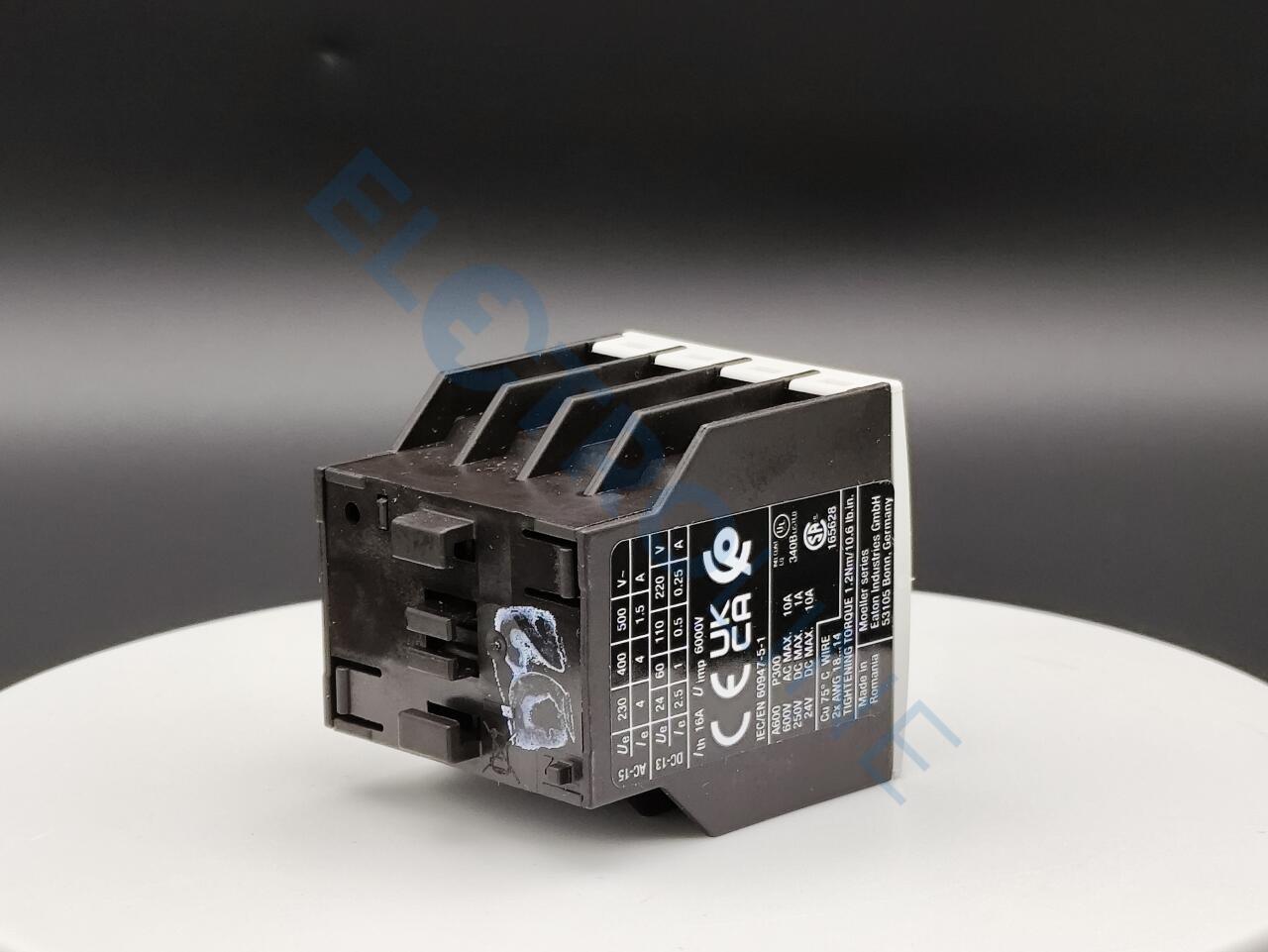 Вспомогательный контактный модуль, с принудительно ведомыми контактами, Коммутационные элементы в соответствии с EN 50005, Сочетания версии E соответствуют стандарту EN 50011, поэтому их использование предпочтительно., Контактор постоянного тока DILA(C)-22 сочетается только с 2-полярными вспомогательными контактами., Функция: для стандартных применений, 4-полюсн., Техника присоединения: Винтовые клеммы, Расчетный рабочий ток AC-15 220 В 230 В 240 В: Ie= 4 A, Расчетный рабочий ток AC-15 380 В 400 В 415 В: Ie= 4 A, Назначение контактов Замык. = замыкающий контакт: 4 замык, Вид монтажа: Фронтальная установка, Применяемое для: DILA(C)…, DILM(C)7…, DILM(C)9…, DILM(C)12…, DILM(C)15…, DILM(C)17…, DILM(C)25…, DILM(C)32…, DILM38…, DILMP20…, DILMP32…, DILMP45…, DILL…, DILMF8…, DILMF11…, DILMF14…, DILMF17…, DILMF25…, DILMF32…, исполнение: Вспомогательный контакт верхней установки, указания: Контакты с принудительным управлением, согласно IEC/EN 60947-5-1, приложение L, в модулях вспомогательных контактов, а также для встроенных вспомогательных контактов DILM 7 - DILM32, Вспомогательный размыкающий контакт, пригоден в качестве зеркального контакта в соответствии с IEC/EN 60947-4-1 приложение F (не НЗ с задержкой размыкания), Кодовое число/исполнение комбинаций кодовое число: 80E, 71, 62