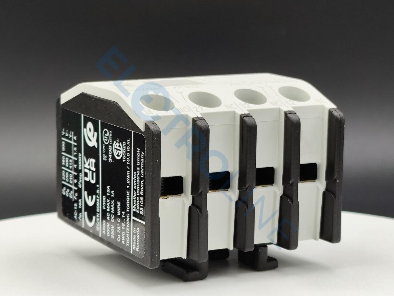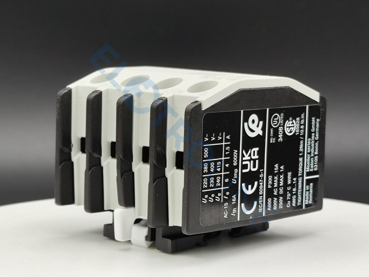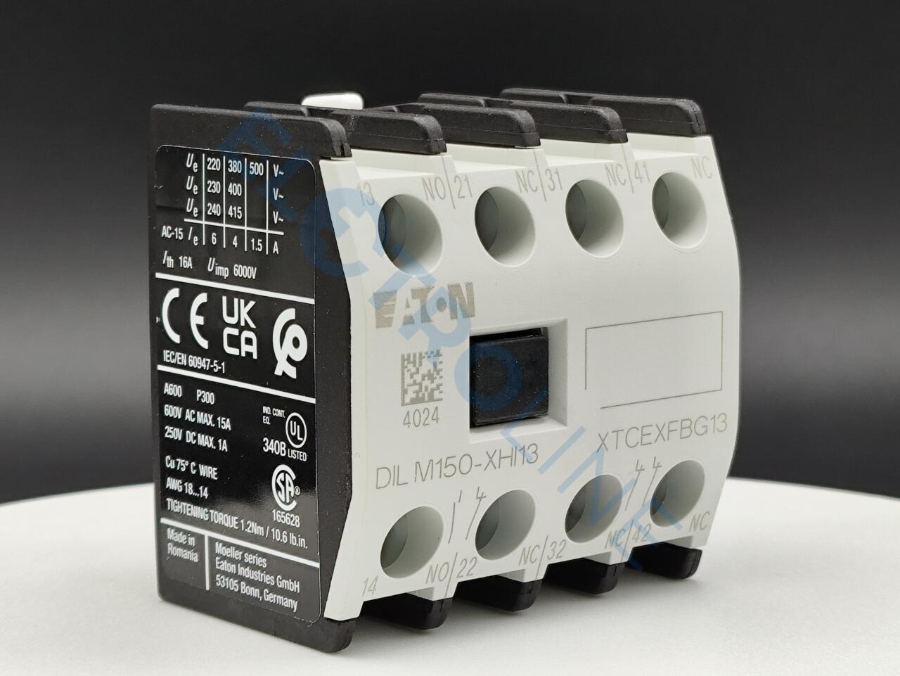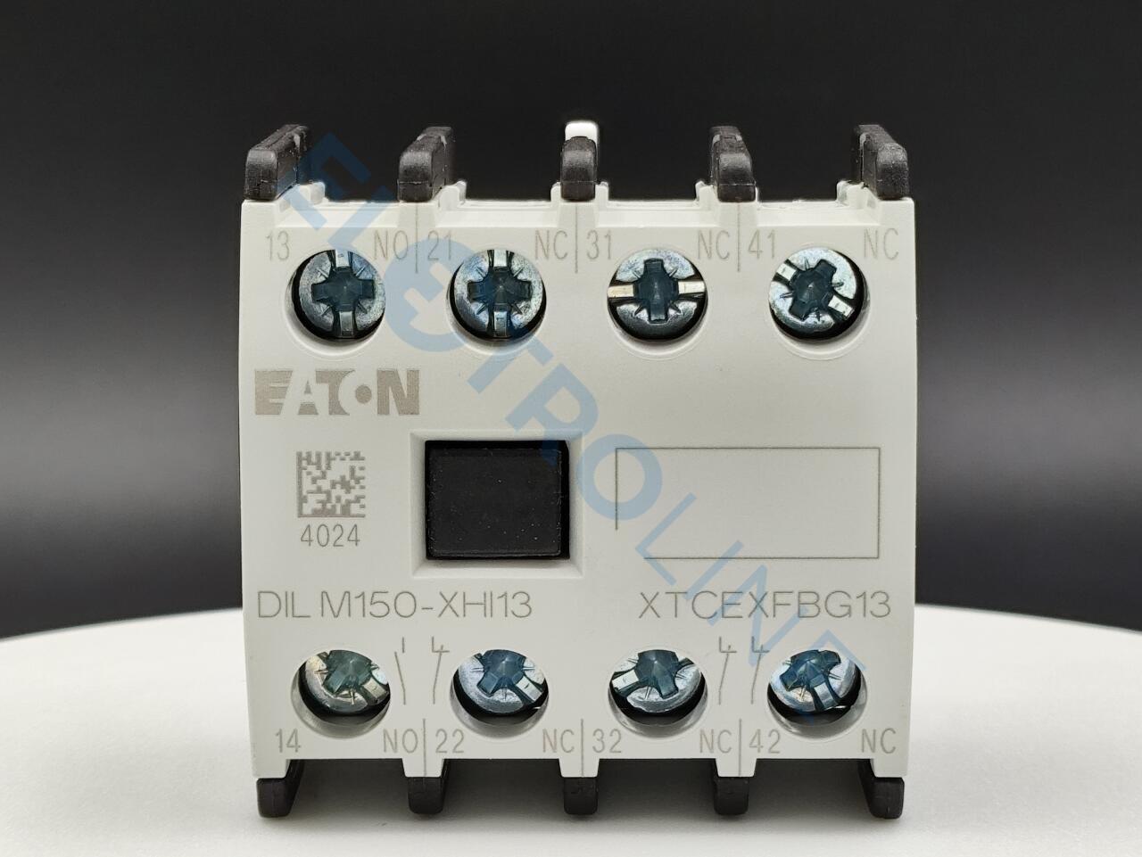 Вспомогательный контактный модуль, с принудительно ведомыми контактами, Функция: для стандартных применений, 4-полюсн., Техника присоединения: Винтовые клеммы, Расчетный рабочий ток AC-15 220 В 230 В 240 В: Ie= 6 A, Расчетный рабочий ток AC-15 380 В 400 В 415 В: Ie= 4 A, Назначение контактов Замык. = замыкающий контакт: 1 замык, Назначение контактов Разм. = размыкающий контакт: 3 разм., Вид монтажа: Фронтальная установка, Применяемое для: DILM40…, DILM50…, DILM65…, DILM72…, DILM80…, DILM95…, DILM115…, DILM150…, DILM170…, DILMP63…, DILMP80…, DILMP125…, DILMP160…, DILMP200…, DILMF40…, DILMF50…, DILMF65…, DILMF80…, DILMF95…, DILMF115…, DILMF150…, исполнение: Вспомогательный контакт верхней установки, указания: Контакты с принудительным управлением, согласно IEC/EN 60947-5-1, приложение L, в модулях вспомогательных контактов, Вспомогательный размыкающий контакт, пригоден в качестве зеркального контакта в соответствии с IEC/EN 60947-4-1 приложение F (не НЗ с задержкой размыкания)