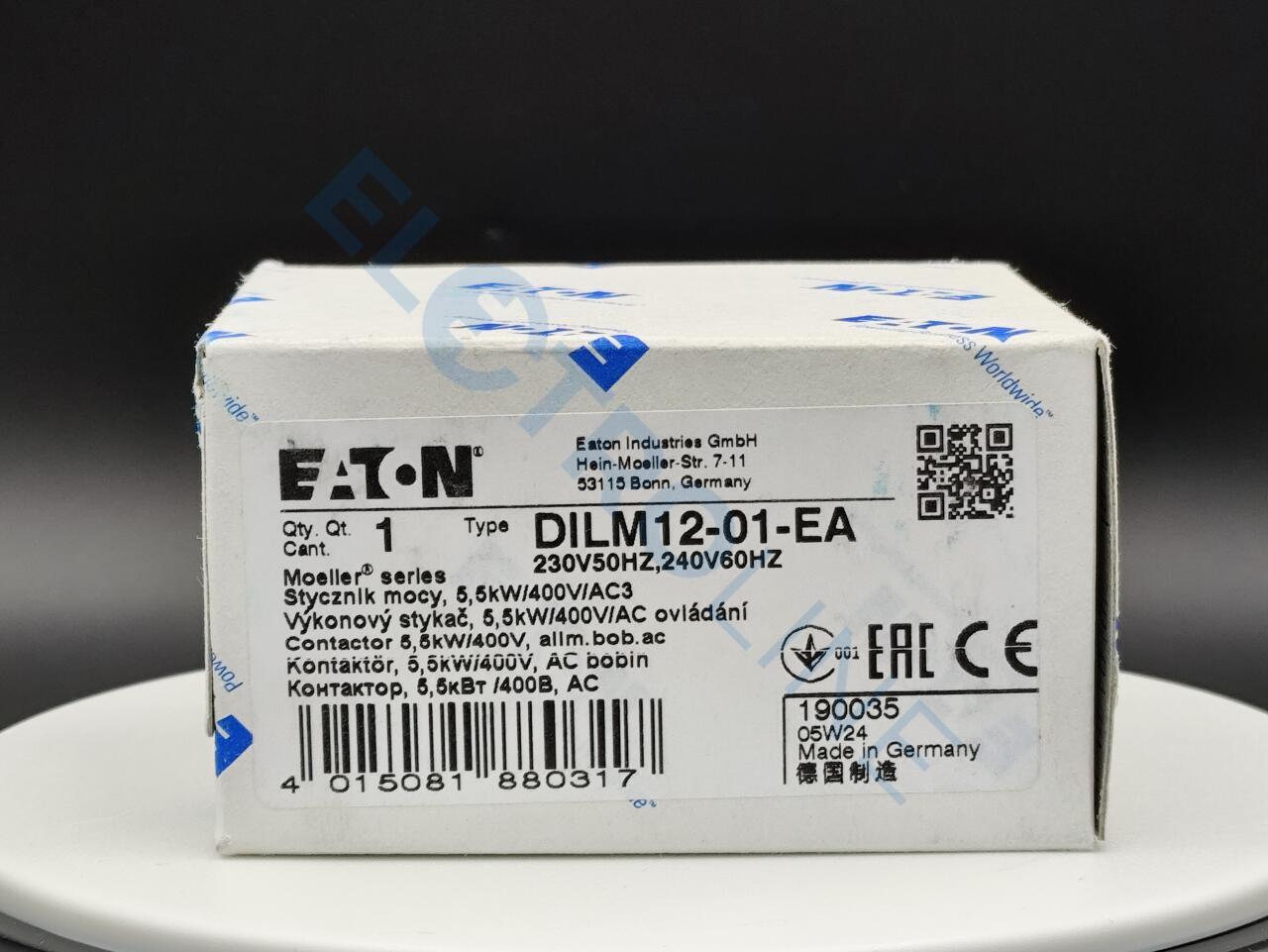 DILM12-01(230V50HZ,240V60HZ)-EA Контактор 12 А, управляющее напряжение 230В (АС), 1НЗ доп. контакт, категория применения AC-3, AC-4