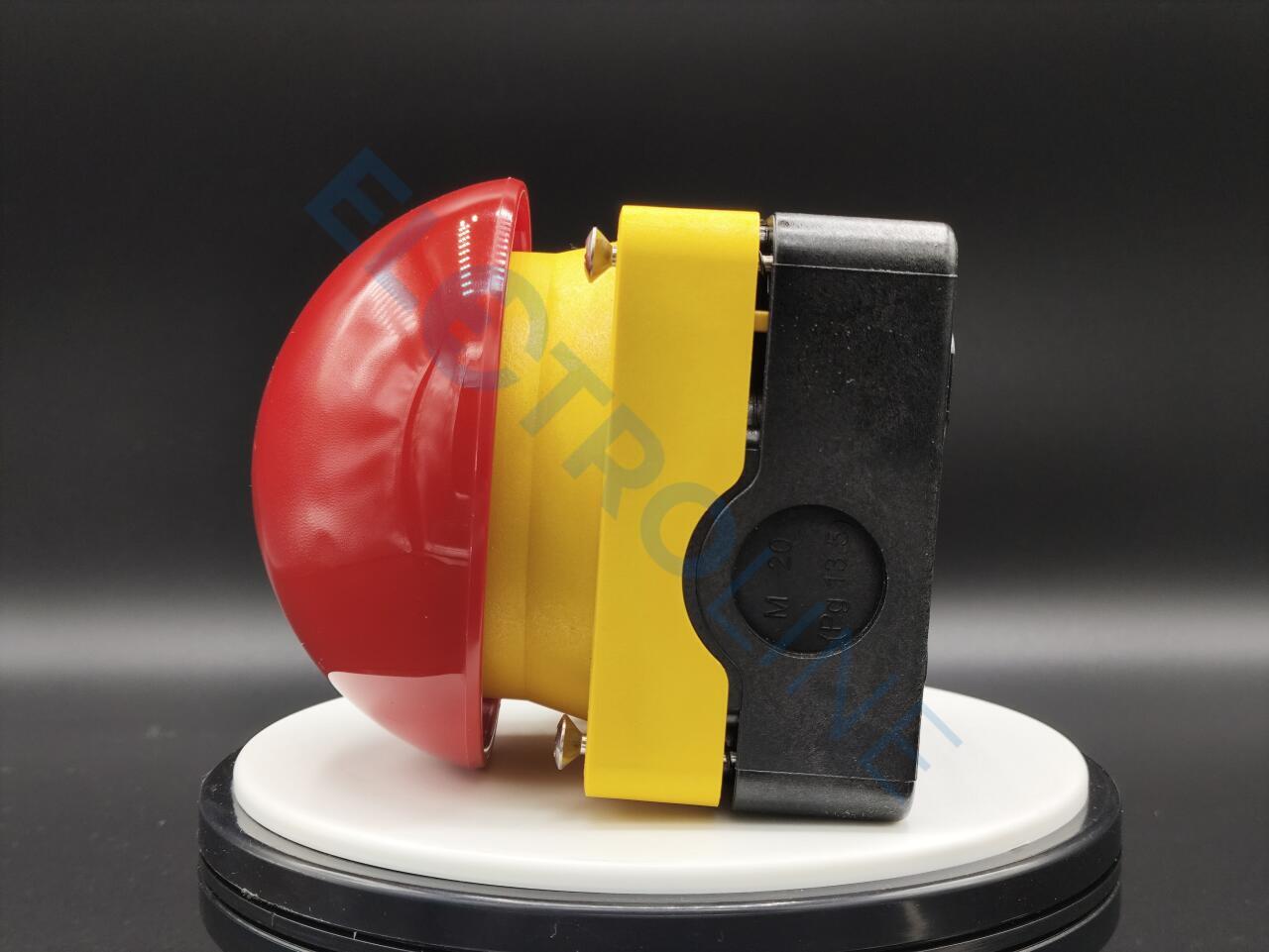 Выключатель, управлямый ногой или ладонью с фиксацией, отмена фиксации вытягиванием,1Р, цвет колпачка красный,корпуса желтый