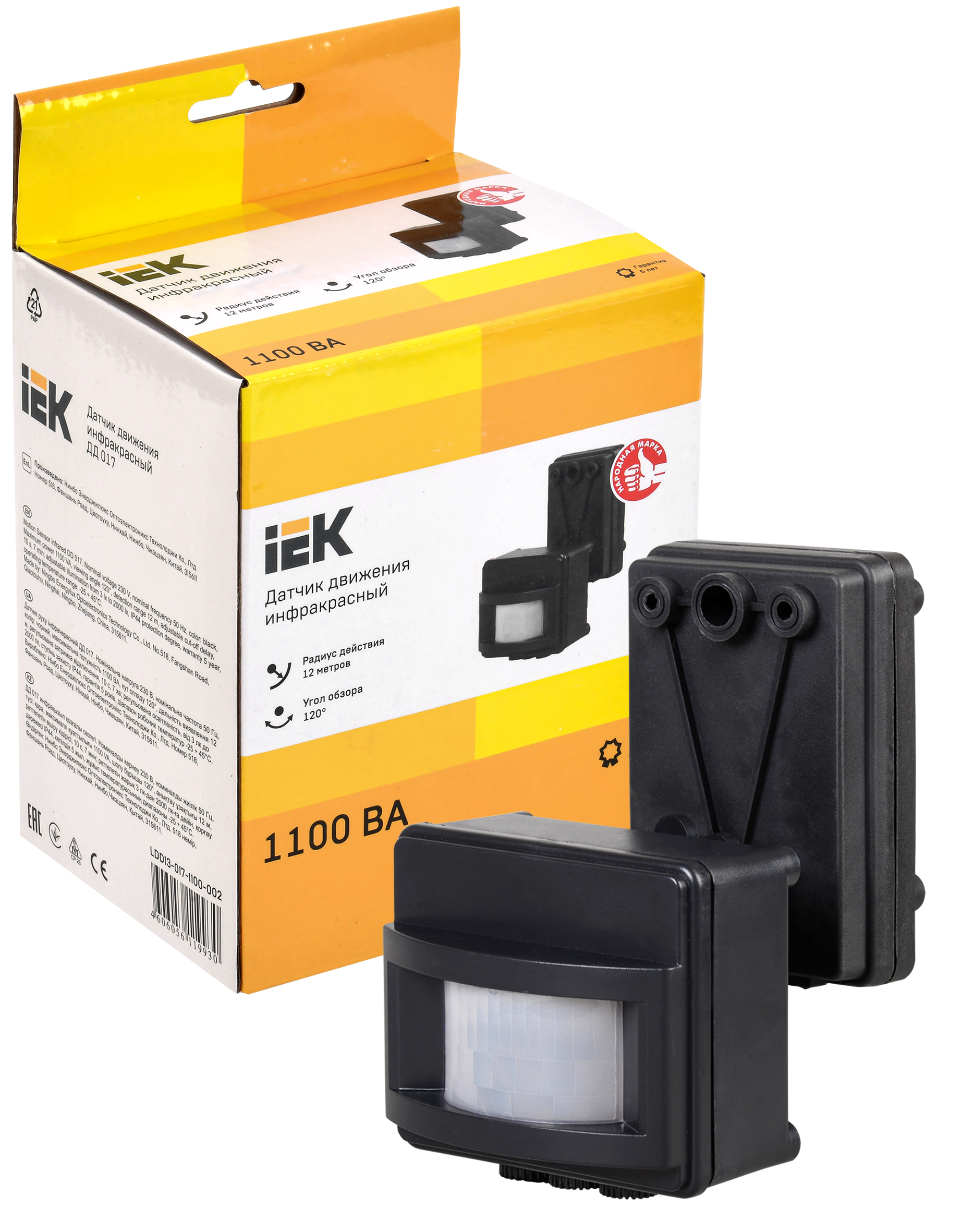 LDD13-017-1100-002 Датчик движения ДД-017 1100Вт 120град 12м IP44 черный IEK