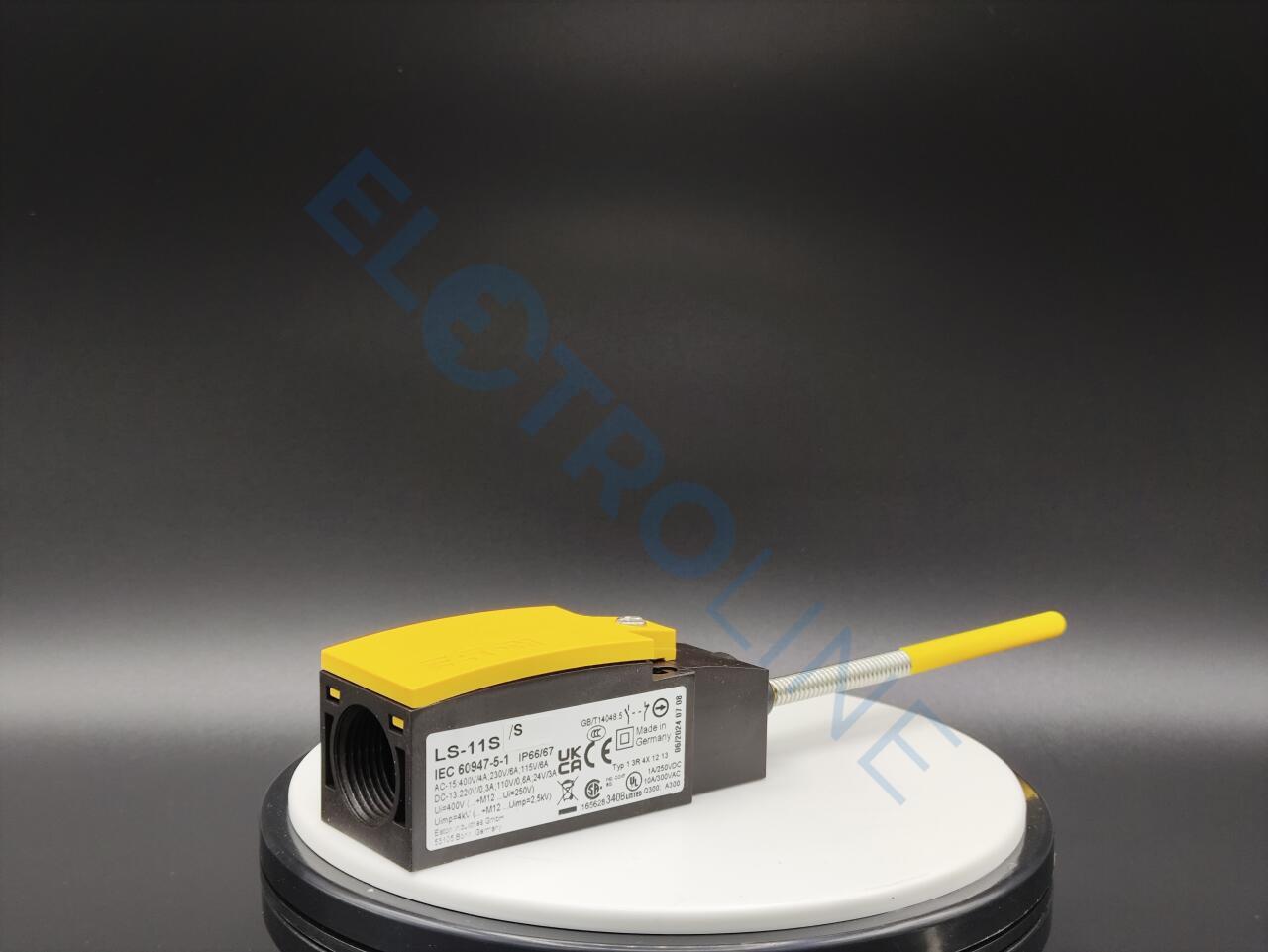 Датчик положения, Основная функция: датчик положения, Идентификатор типа: LS(M)-…, Ассортимент: Гибкий стержень, Класс защиты: IP66, IP67, оснащение: Законченное устройство, Температура окружающей среды: -25 - +70 °C, Пружинный контакт: да, Описание: не использовать в качестве предохранительного датчика положения, Назначение контактов Замык. = замыкающий контакт: 1 замык, Назначение контактов Разм. = размыкающий контакт: 1 разм., Цвет Крышка корпуса: желтый, корпус: пластик, Способ подключения: Зажим Cage-Clamp, Cage Clamp - зарегистрированная торговая марка фирмы WAGO Kontakttechnik GmbH, 32432 Minden., Принадлежности для соединения Cage-Clamp фирмы Wago: вставная перемычка, серая, номер Wago для заказа: 264-402, Длина стержня: 126 мм, Стандарты и положения: IEC/EN 60947