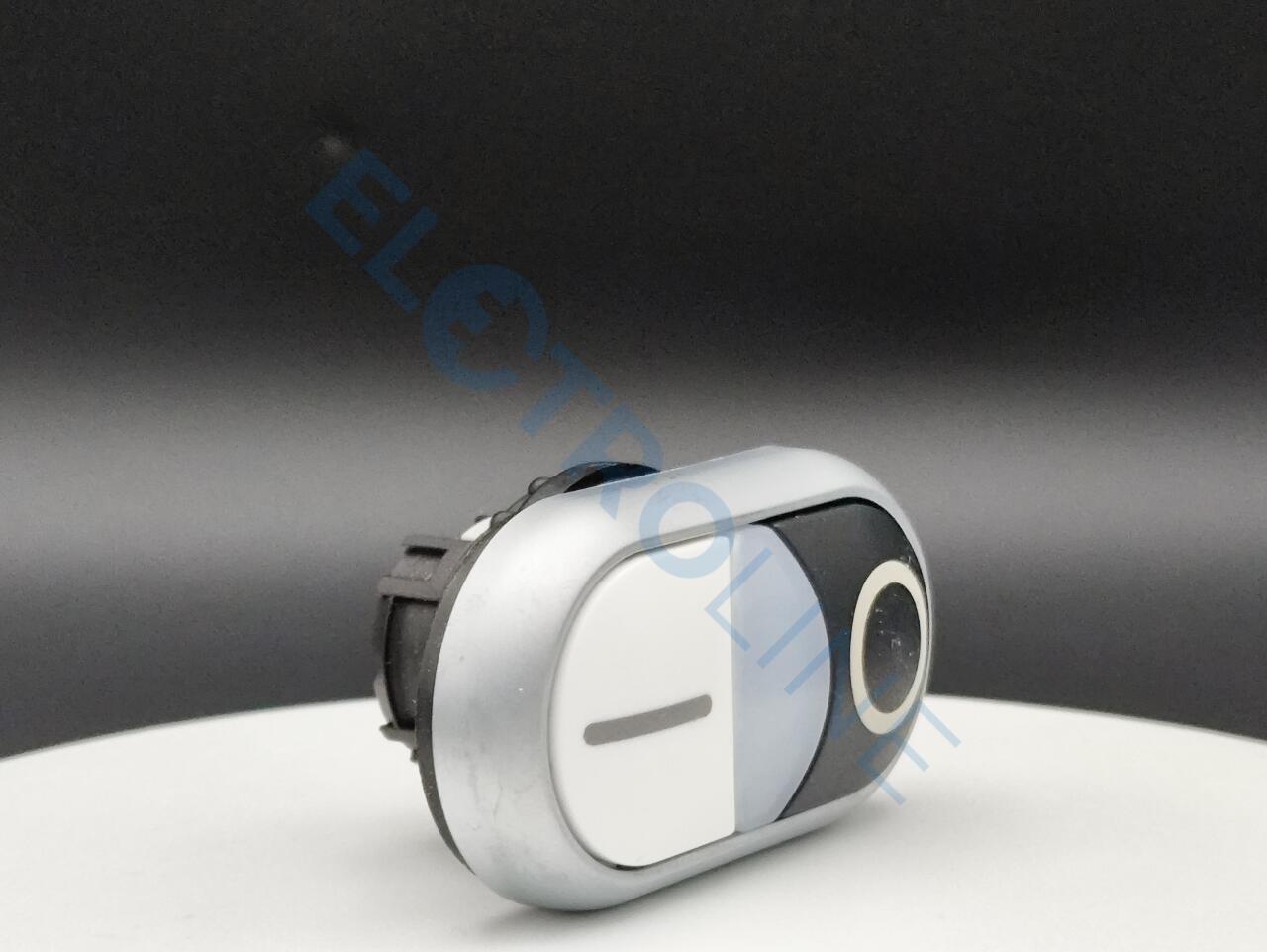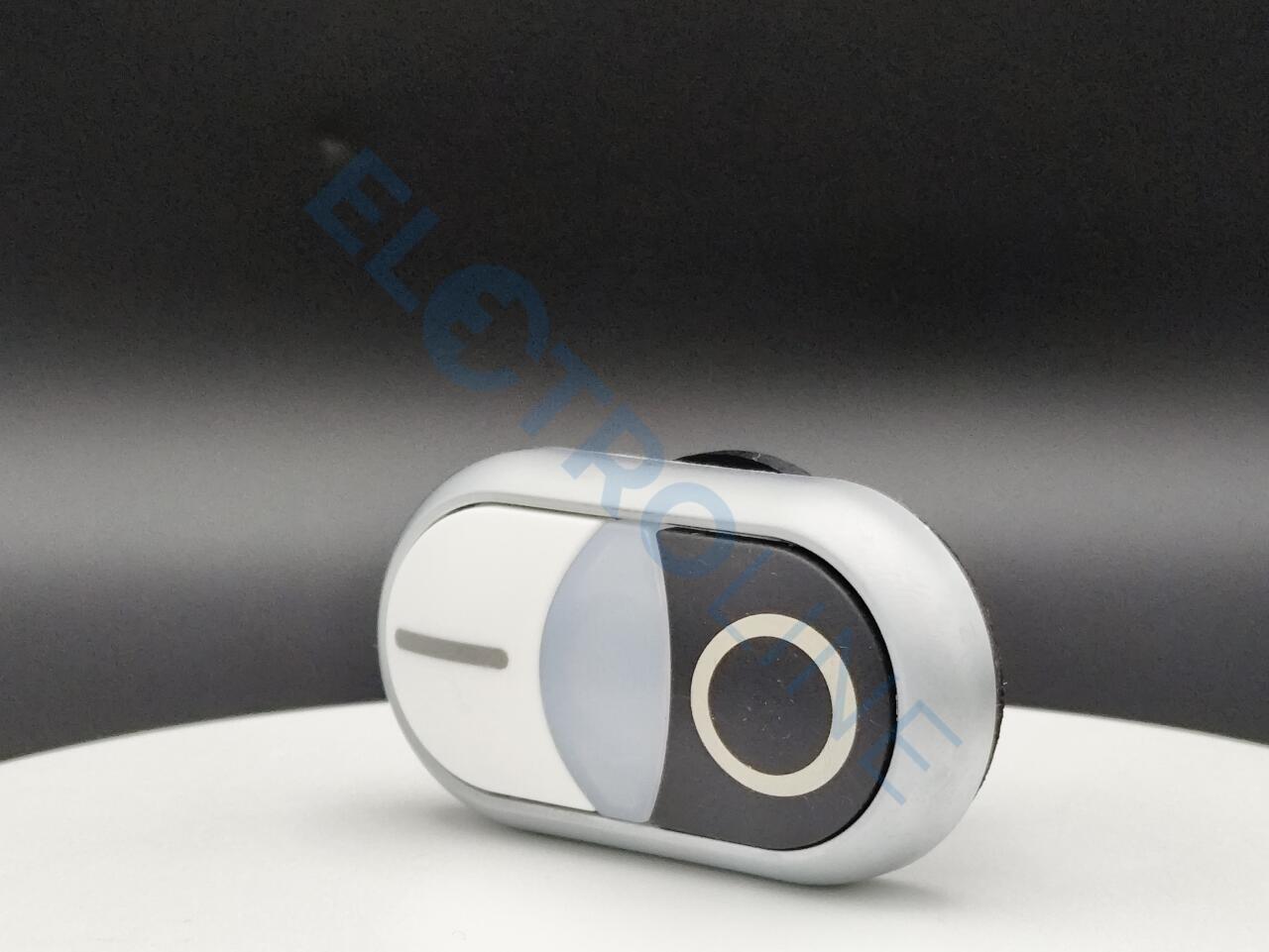 Двойная кнопка с сигнальной лампой с обозначением I O, цвет белый/черный