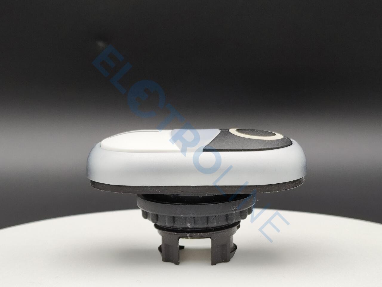Сдвоенная кнопка, Ассортимент: RMQ-Titan, Отдельное устройство, конструктивное исполнение: Клавиши и выступающие световые индикаторы, без фиксации, Описание: Белая линза, Кнопочная панель: белый, черный, Кнопочная панель с маркировкой, Класс защиты: IP66, Рамка Titan, Подключение к SmartWire-DT: да, с разъемами SWD-RMQ, размеры передней панели: 29,7 x 54,7, Стандарты и предписания: IEC/EN 60947, VDE 0660