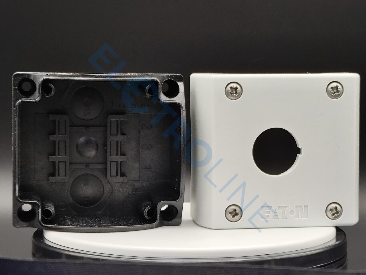Корпус для поверхностного монтажа, корпус: пластик, с винтами из нержавеющей стали, Места установки: 1, ввод проводки: задн.: 2, M16, вверху: 1 x M20, сбоку: 2 x M20/M25 (по 1 шт. на сторону), Класс защиты: IP66, IP67, IP69K, Цвет Значение RAL: RAL 7035, Цвет: Нижняя часть корпуса, чёрная, Подключение к SmartWire-DT: нет, Применяемое для: 1 x 22.5, Применяемое для: (Illuminated) pushbuttons, (Illuminated) selector switches, Key-operated pushbuttons, Indicator light, controlled stop/emergency-stop buttons with yellow label