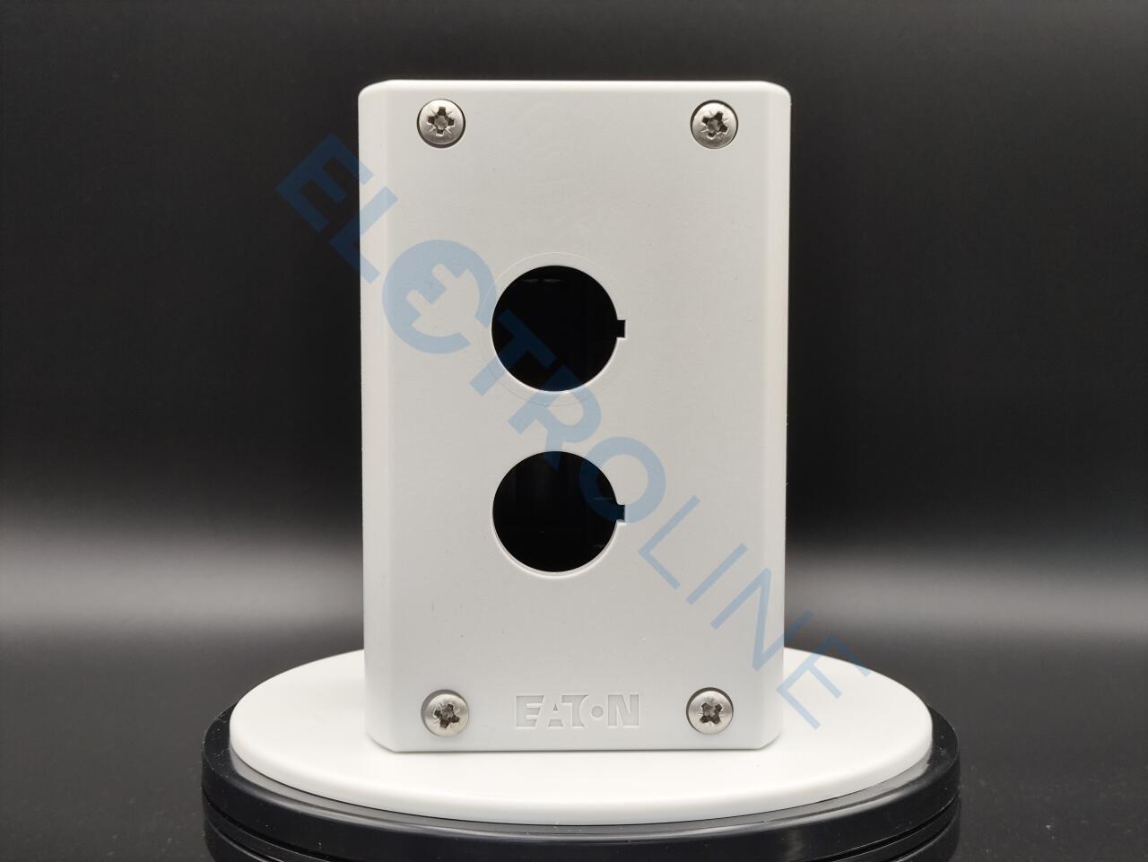 Корпус для поверхностного монтажа, корпус: пластик, с винтами из нержавеющей стали, Места установки: 2, ввод проводки: задн.: 2, M20, вверху: 1 x M20, сбоку: 2 x M20/M25 (по 1 шт. на сторону), Класс защиты: IP66, IP67, IP69K, Цвет Значение RAL: RAL 7035, Цвет: Нижняя часть корпуса, чёрная, Подключение к SmartWire-DT: нет, Применяемое для: (Illuminated) pushbuttons, (Illuminated) selector switches, Key-operated pushbuttons, Indicator light, controlled stop/emergency-stop buttons with yellow label