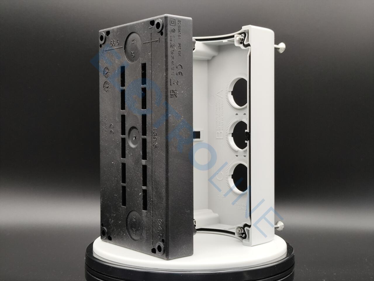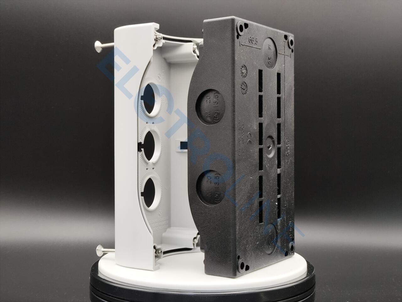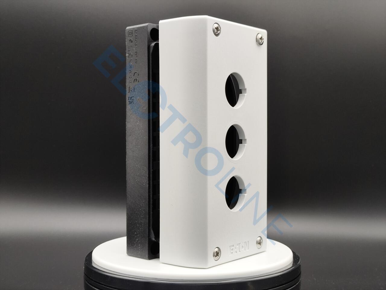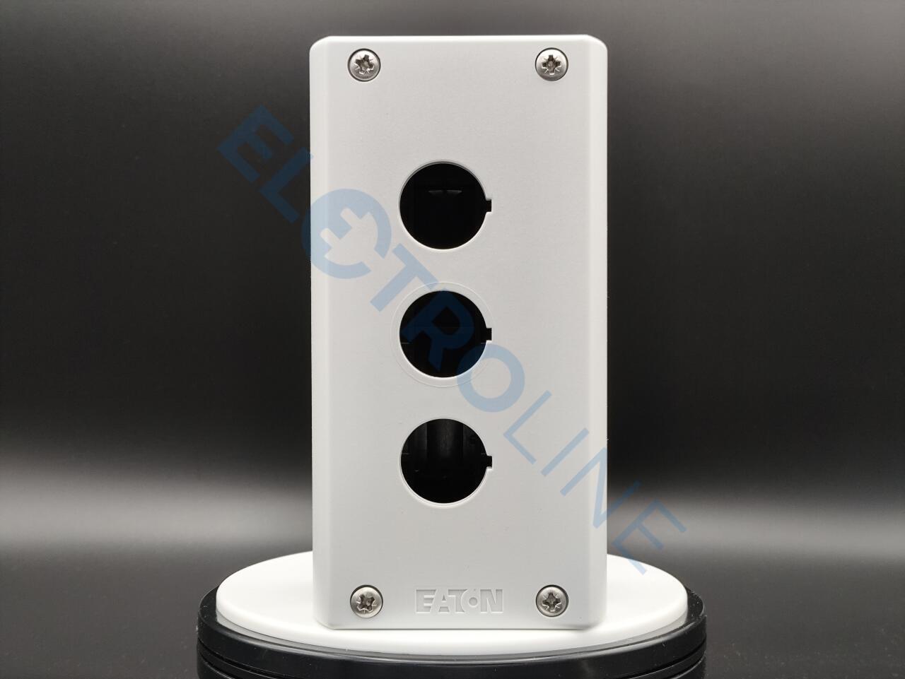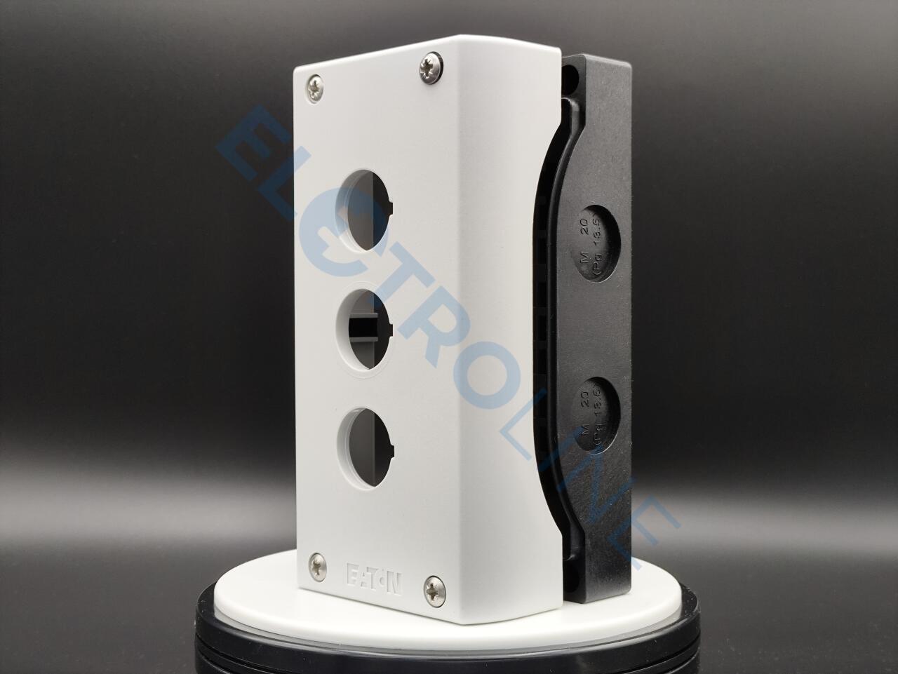 Корпус для поверхностного монтажа, корпус: пластик, с винтами из нержавеющей стали, Места установки: 3, ввод проводки: задн.: 2, M20, вверху: 2 x M20, сбоку: 2 x M20/M25 (по 1 шт. на сторону), Класс защиты: IP66, IP67, IP69K, Цвет Значение RAL: RAL 7035, Цвет: Нижняя часть корпуса, чёрная, Подключение к SmartWire-DT: нет, Применяемое для: (Illuminated) pushbuttons, (Illuminated) selector switches, Key-operated pushbuttons, Indicator light, controlled stop/emergency-stop buttons with yellow label