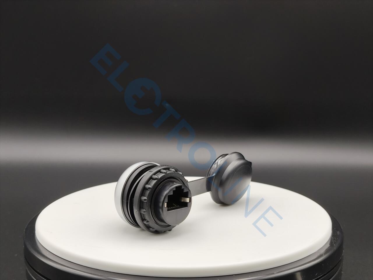 Гнездо, Общее дополнительное оснащение, Гнездо RJ45, 8/8, кат. 5e, Класс защиты: IP65 (с закрытой крышкой), IP20 (со вставленным штекером), Рамка Titan, Подключение к SmartWire-DT: нет, Применяемое для: Монтаж спереди, Полюсы: 8