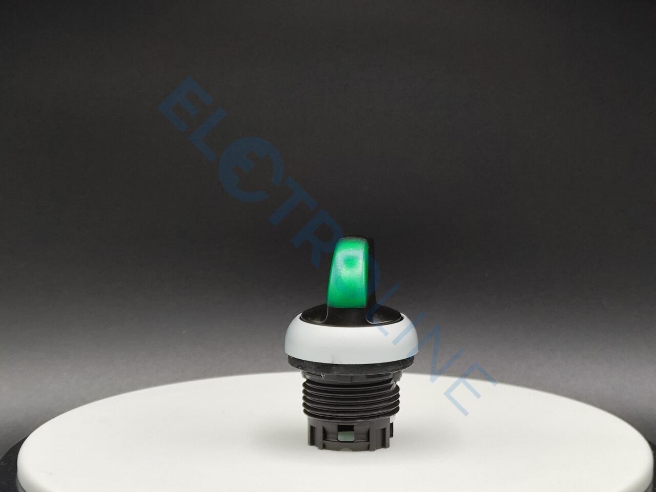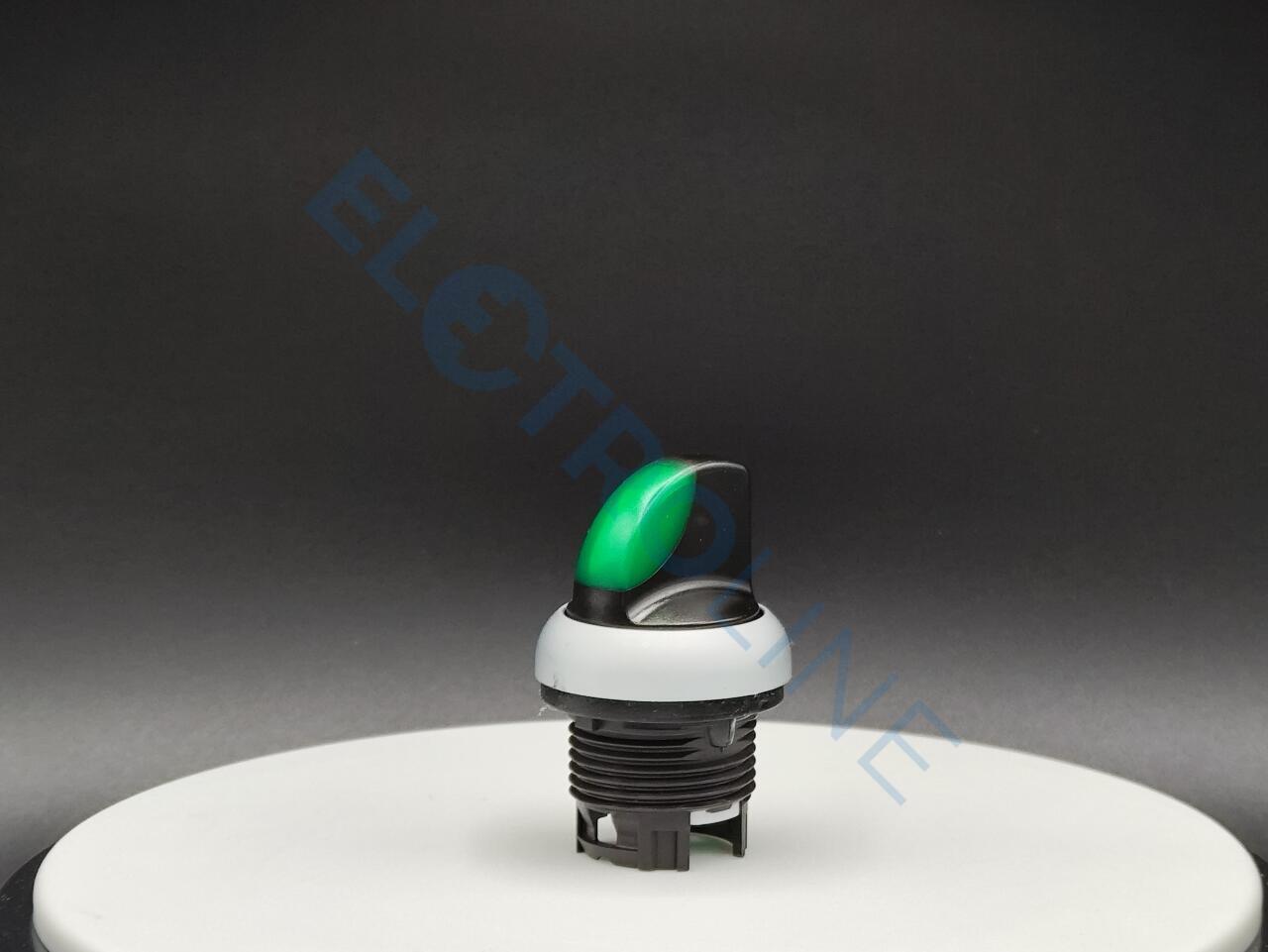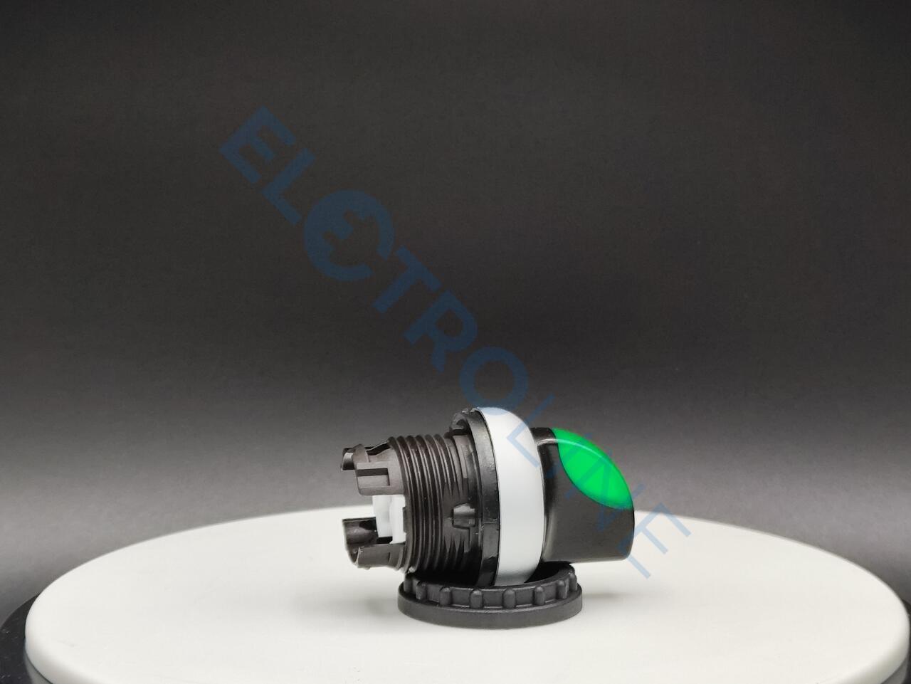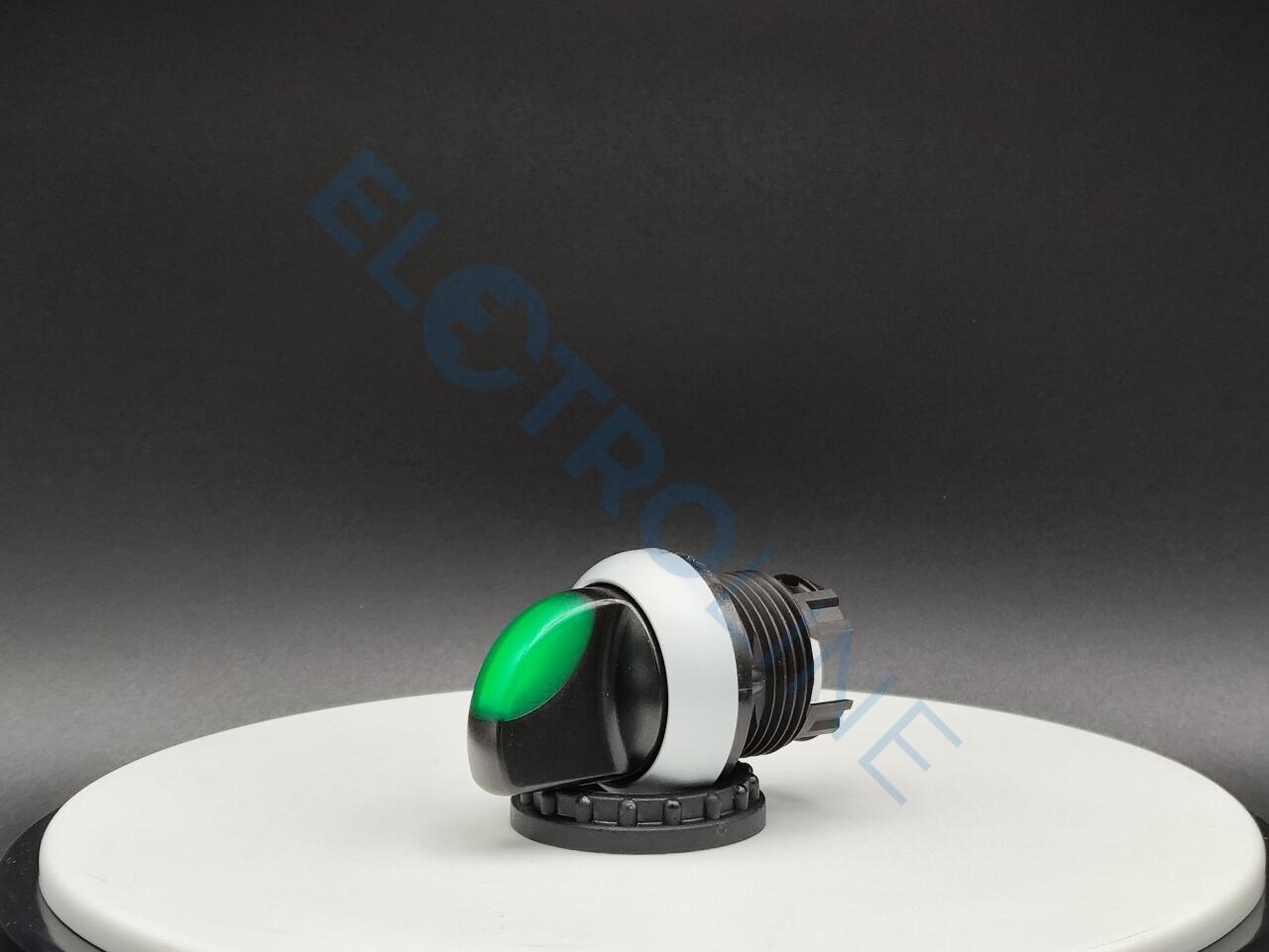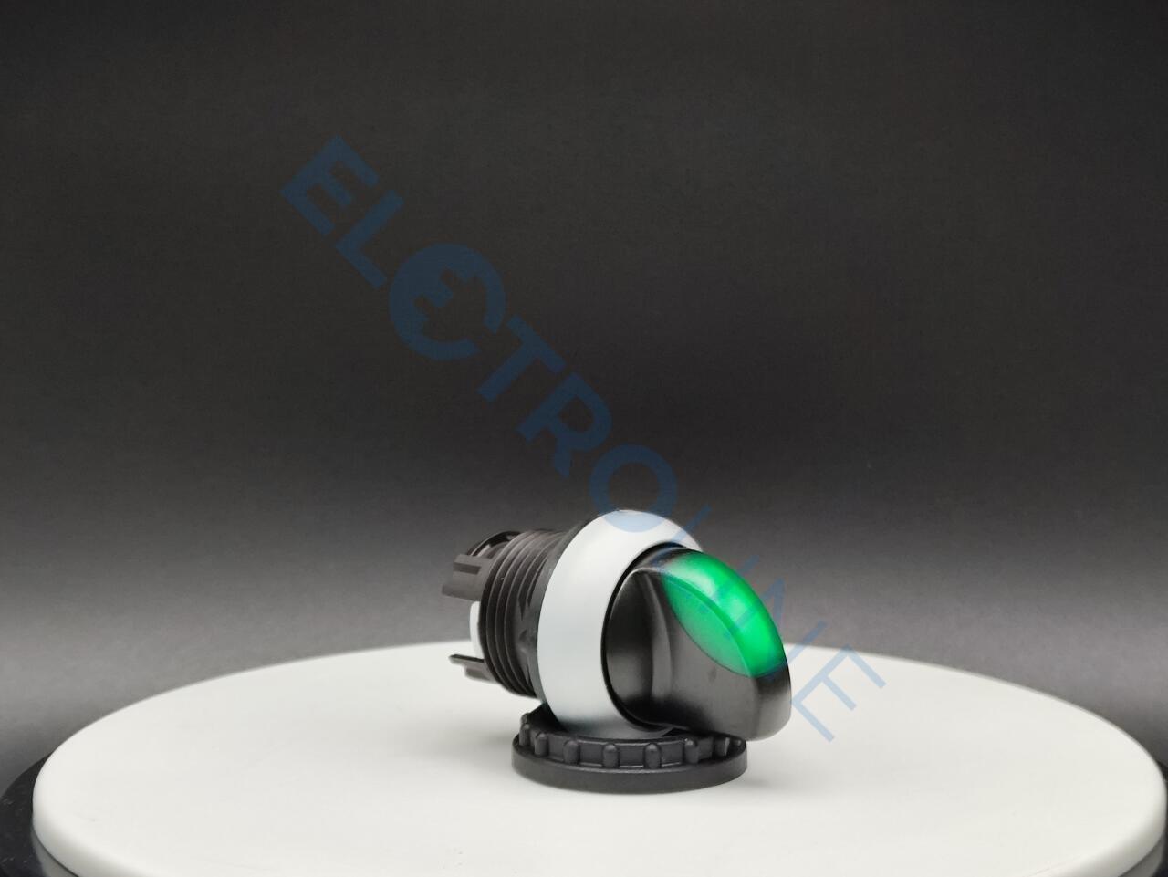 Переключатель с поворотной ручкой 2-х позиционный 60⁰, c фиксацией, цвет зеленый с подсветкой