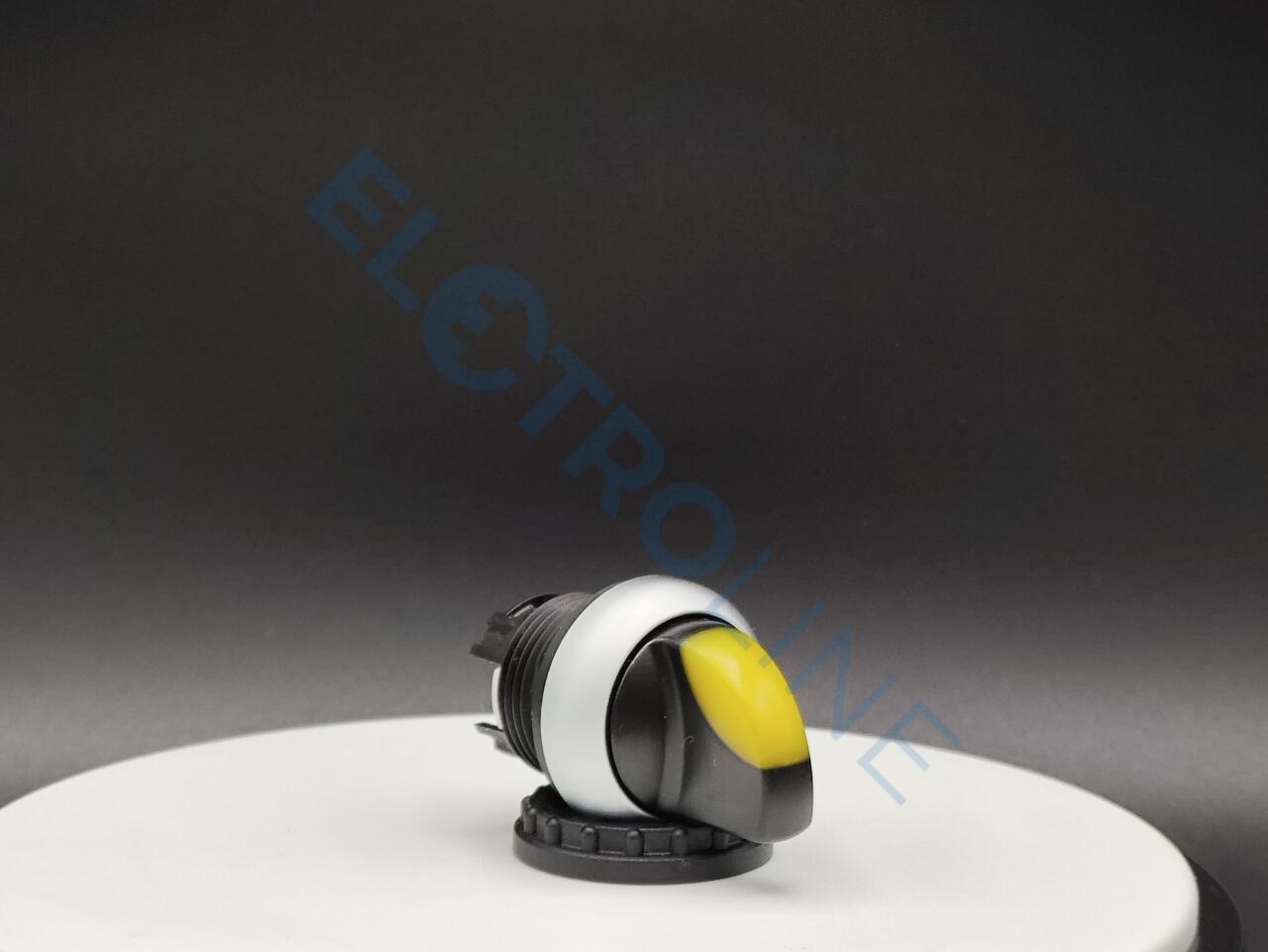 Переключатель с поворотной ручкой 3-х позиционный 60⁰, c фиксацией, цвет желтый с подсветкой